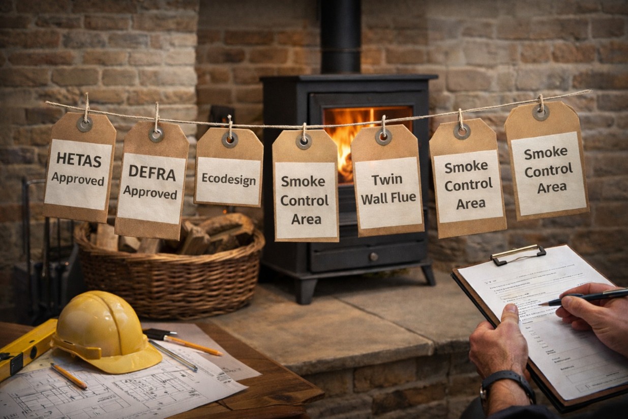 Choosing a fireplace or stove can feel overwhelming if you are unfamiliar with the terminology used by manufacturers, installers and showrooms. From flue types and heat output to regulatory terms such as Ecodesign and DEFRA approved, the language around fires and stoves can be confusing for first time buyers and even experienced homeowners.
